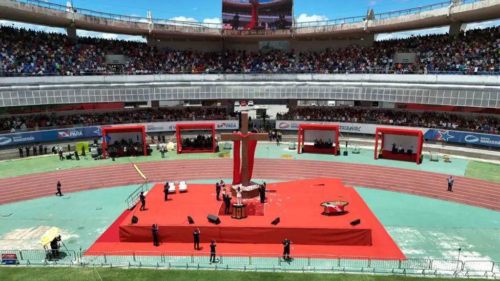 Belém (PA) – Mais de 50 mil pessoas lotaram o Estádio Olímpico do Pará Jornalista Edgar Proença, o Mangueirão, na manhã desta sexta-feira (3 de abril), para o evento “Família ao Pé da Cruz”, promovido pela Igreja Universal do Reino de Deus. A programação, realizada simultaneamente em diversas capitais e cidades do Brasil, marcou a Sexta-Feira Santa com um grande momento de fé, oração e fortalecimento dos laços familiares.